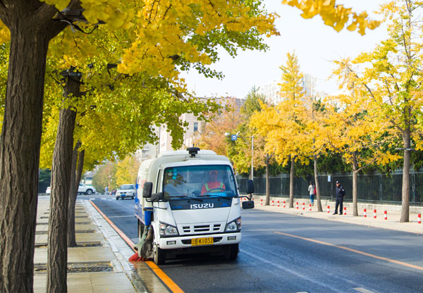 機(jī)洗(洗掃車(chē)洗掃吸一體)→機(jī)保(保潔車(chē)巡回保潔)→人沖(手持槍沖洗人行道)→人工(人工清掃保潔) -